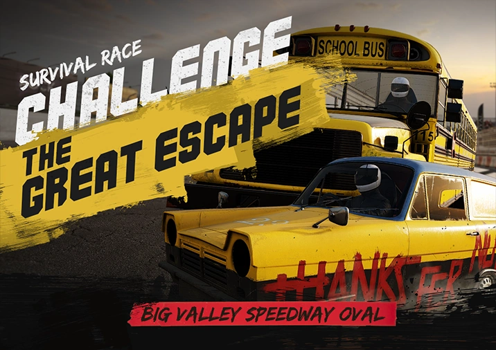 Season opener! Take your rattiest heap and wreck your way to the victory at a banger racing weekend with three heats and a full grid of clunkers turned into destriction machines. Whatever you do, make sure you drive fast and die last.